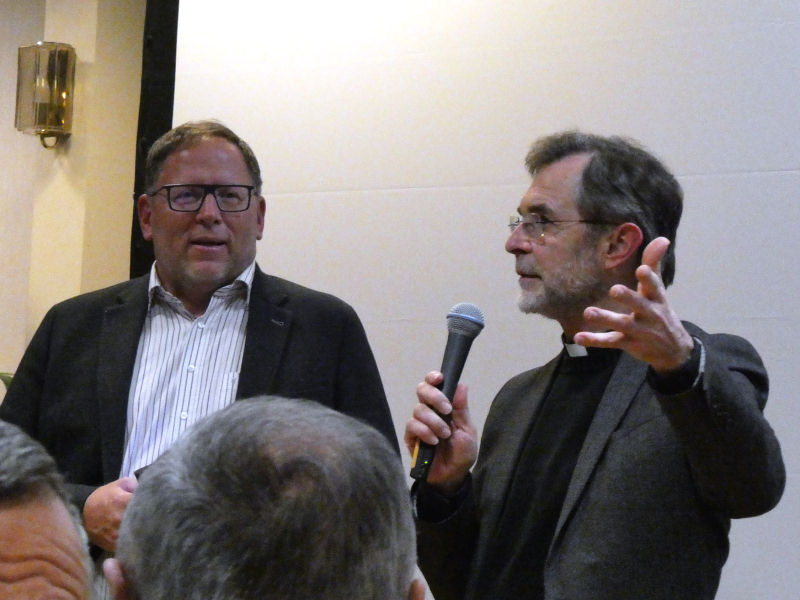 Bei der anschließenden Agape im Pfarrzentrum war der Ulrichssaal voll gefüllt. Herr Christian Andre zeigte einen filmischen Rückblick auf die vergangenen 250 Dekanatsmännermessen. Franz Amon konnte vieles aus seiner eigenen Erfahrung berichten. Adminstrator Josef Grünwidl zeigte sich beeindruckt von den vielen Gottesdienststätten des Dekanates Hollabrunn und er forderte alle auf, diese Gotteshäuser mit Leben zu erfüllen. Auch einige kurze persönliche Gespräche mit dem künftigen Erzbischof waren vor seiner Rückreise nach Wien möglich.