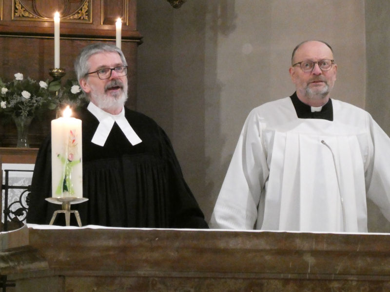 Traditionell wurden Geschenke ausgetauscht. Die evangelische Gemeinde bekam eine Kerze, die katholische Gemeinde bekam Plakate mit Bibelzitaten.